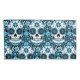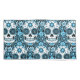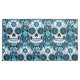 O crânio de açúcar Dia de los Muertos em tons coloridos de azul cercados por flores.