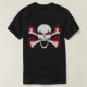 T-shirt preto que caracteriza um crânio com ossos cruzados e as chamas vermelhas. O abutre Kulture® é uma marca do estilo de vida criada pelo artista ilustre Dan Statler do metal, desenhista da produção de garagem do monstro. O abutre Kulture® representa o espírito da arte da testa, do Kustom Kulture, e da cultura retros, baixos do carro de Califórnia.