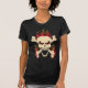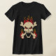O t-shirt preto das mulheres com um crânio com ossos e as chamas cruzados. O abutre Kulture® é uma marca do estilo de vida criada pelo artista ilustre Dan Statler do metal, desenhista da produção de garagem do monstro. O abutre Kulture® representa o espírito da arte da testa, do Kustom Kulture, e da cultura retros, baixos do carro de Califórnia.
