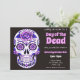 Procurando uma forma festiva e única de convidar seus amigos para a festa do Dia das Bruxas Mortas? Não olhe mais do que o nosso personalizável Dia do Crânio de Açúcar do Convite do Festa de Halloween! Apresentando um incrível design de crânio de açúcar em tons azuis e violetas em um fundo preto, este convite certamente define o tom perfeito para sua celebração. Com nossos campos de texto personalizáveis, você pode adicionar todos os detalhes importantes do seu partido, da data e hora ao local. E com nosso recurso de download instantâneo, você pode ter seus convites prontos para serem enviados em breve! Então, se vocês estão procurando um convite para festas de Halloween que seja ao mesmo tempo colorido e personalizável, nosso Dia do Crânio do Açúcar do convite à Morte é a escolha perfeita. Prepare-se para impressionar seus convidados com um convite que captura perfeitamente o espírito deste feriado festivo!