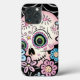 Doce Dia de los Muertos crânio de açúcar com flores em tons cor-de-rosa em uma teia de aranha.