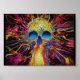 Poster de Blacklight com toneladas de cores e um legal e doido Abstrato popular de crânio
