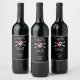 Etiquetas de vinho preto personalizadas com crânio pirata e bósforos.