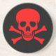 Porta copos preta do arenito com crânio vermelho e crossbones.