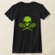 O crânio & cruzou o t-shirt das senhoras do tênis das raquetes com o gráfico afligido do verde da bola de tênis.