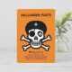 crânios de Halloween em convite laranja
