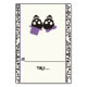 Crânios divertidos Cartão de escolta dobrada de noiva roxo e preto de Halloween, com noiva de casal do crânio preto e noiva sobre fundo de marfim e uma borda padrão do crânio. O noivo está vestindo um chapéu e a noiva um arco. Este modelo de casamento do estilo gótico moderno e contemporâneo é perfeito para um casamento de Halloween. Dobre o cartão ao longo do centro para pegar um cartão de escolta estilo tenda.