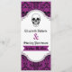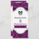 Skulls damask roxo, padrão preto e banner da cerimônia de noiva do Halloween. Este elegante design apresenta um padrão floral e crânio úmido, uma armação no centro, um crânio preto e uma faixa roxa. Um design contemporâneo, porém clássico, com uma fonte de estilo vintage. Design elegantemente assustador, perfeito para o outono/outono ou casamentos no inverno de Gótico ou Halloween. É um modelo totalmente personalizável e faz parte de um casamento.