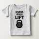 CRAWL WALK LEVANTE malhação motivacional engraçada citando camisas de bebês. Logotipo de peso Kettlebell com palavras humorísticas para recém-nascidos/crianças. Vestuário do garoto de tendências para pai de halterofilista, construtor de corpo, mãe do treinador pessoal, elevador de potência, guru de malhação, treinador esportivo etc. Design para um novo bebê ou uma menina e pais. Cinza ou outra cor.