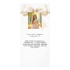 Cartão de menu de festa de aniversário. Personalize e adicione um nome, idade, data e menu. Um fundo branco e um arco grande, cor bege. Voltar: adicionar uma foto da aniversariante, fatos divertidos