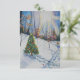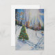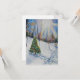 Uma bela árvore de Natal aparada fica no meio da floresta, brilhando num dia de explosão solar do inverno. As neves profundas pegam a luz e apontam as pegadas da alma gentil que entrou na floresta para pendurar luzes e ornamentos nos galhos para fazer uma pequena magia de Natal. Cartão de Natal.