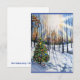 Uma bela árvore de Natal aparada fica no meio da floresta, brilhando num dia de explosão solar do inverno. As neves profundas pegam a luz e apontam as pegadas da alma gentil que entrou na floresta para pendurar luzes e ornamentos nos galhos para fazer uma pequena magia de Natal. Um cartão especial de Natal.