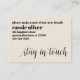 Mantenha seus amigos e familiares atualizados com seu novo endereço usando esses cartões de gabinete modernos. O design apresenta elementos de tipografia contrastantes, em letras minúsculas. Seu nome aparece em uma fonte serif forte e em negrito, à esquerda da frente do cartão. Abaixo, à direita, coloquei uma camada gráfica de tipografia que apresenta uma fonte moderna de escrita manual, que diz "se moveram". No verso, a fonte serif foi usada na configuração do modelo, onde você adicionará seus detalhes pessoais; basta usar o campo fornecido para substituir meu texto de espaço por seu próprio. Esses detalhes aparecem alinhados à esquerda e na parte superior da parte traseira. Na parte inferior direita, usando a mesma fonte de script na parte frontal, adicionei "permaneça em contato". Se você quiser alterar a fonte ou os tamanhos de qualquer um dos seus detalhes pessoais, basta clicar para personalizar ainda mais. Também neste caso, poderá acrescentar mais linhas de texto, como números de telefone adicionais, caso seja necessário. O plano de fundo pode ser alterado para qualquer cor que você preferir. 94 //