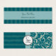 Um padrão floral digital sem descontinuidades de teal de tom joalheiro e creme prateado no topo, e uma imagem de tamanho de molho de safra e de molho aquamarino no fundo, com uma camada de fita com um selo de texto monograma personalizável.