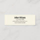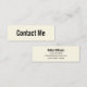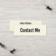 Este cartão de visita de mini creme diz "contacte-me" na frente da cartão de visita. A parte traseira tem quatro linhas de texto de exibição para seu nome e informações de contato, como seu número de telefone, endereço de email e/ou identificador de mídia social. Todo o texto pode ser editado ou excluído.
