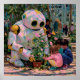 Crianças e robôs brincalhões compartilham plantando flores, mostrando um mundo esperançoso onde nutrir se torna uma missão compartilhada entre gerações e máquinas.