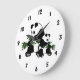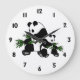 Panda mama senta-se comendo bambu enquanto o bebê faz como o bebê panda vê