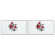 Contorno, lua da crista mecânica com engrenagens, decorada com rosas vermelhas com caules e folhas pretas em fundo branco. Steampunk