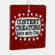 "Criadores de conteúdo se divertem mais" é um design de texto bonito em vermelho com texto preto, junto com forma de sotaque branco e pontos brancos texturizados ao seu redor.
