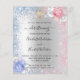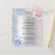 Um batismo moderno e elegante, celebrando dois bebês, uma menina e um menino. Fundo metálico de aspecto fino prateado decorado com faíscas brilhantes azuis e rosadas, uma cruz ouro, flores cor-de-rosa e azuis. Personalize e adicione nomes e detalhes da cerimônia. Letras pretas coloridas.