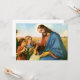 Ilustração antiga de design religioso com Jesus Cristo e crianças que o adoram e lhe trazem flores.