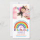 Crianças, Festa de aniversário Arco-Íris, Bonito e coxo Convite para garotas de fotografia. Você está convidado para uma festa de aniversário colorida! Personalize este convite do arco-íris com nome, idade e detalhes da festa. Perfeito para um aniversário temático do arco-íris para uma menina. Carregue uma foto da aniversariante para um toque pessoal. Vermelho, laranja, amarelo, verde, azul, roxo e rosa sobre fundo branco fazem um convite divertido e na moda arco-íris. Coordenar com nossos outros suprimentos de festa de aniversário arco-íris. www.SamAnnDesigns.com