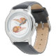 Crianças: relógio clássico de couro mostrado a preto com uma impressão de basquete esportivo. Escolha esta monitorização a partir de vários estilos. Personalize este relógio ou comprar como está. Imagem do stock all-free-download.com