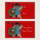 Cartão de natal elegante e alegre em vermelho vibrante, branco, azul, cores verdes.