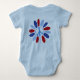 Liberdade, paz, liberdade e espírito rodeiam um símbolo patriótico de paz, que é também uma flor. Há um impressão companheiro na parte de trás da camiseta.