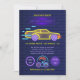 O néon de aniversário brilha no carro de corrida escuro convida personalizável para suas especificidades de evento.