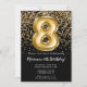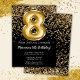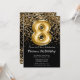 Elegante convite de aniversário preto e dourado 8º para uma menina de 8 anos com roteiro elegante escrevendo e balões de folha divertida.