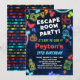 O vamos bateu o relógio e escapou da sala! Personalize seus convites de festas de aniversários de sala de fuga para meninos e meninas com cores divertidas do arco-íris.