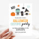 Convite de festas de fantasia de Halloween. Um besta Spooktacular convidando com bruxa fofa, gato, abóbora e frankenstein.
