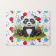 Bonita quebra-cabeça de serra-de-vidro Panda para crianças com círculos de fundo. Personalize com seu nome para fazer deste um presente divertido para qualquer criança!