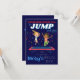 Este convite de festas de aniversário de criança de salto legal é a adição perfeita a qualquer celebração do tema de salto! Colocada contra um rico fundo azul de marinho (personalizável), duas crianças pulam pelo ar em um trampolim e o texto que todos os amigos se juntem à festa. O texto personalizável permite que você mude o nome do aniversariante ou da garota com facilidade! A parte de trás do convite apresenta uma incrível confete de aniversário e gráficos trampoline, assim como espaço para personalizar e mudar os detalhes da festa. Os detalhes incluem data, hora, local e lista de desejos, que podem ser todos editados para as necessidades dos compradores de ajustados!