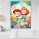 Encha suas paredes com felicidade e charme com esse trabalho de arte alegre de crianças. Com um menino e uma menina sorridentes rodeados por flores brilhantes e sol, este poster irradia positividade, amizade e alegria brincalhona. Perfeito para salas de crianças, berçários, salas de aula ou qualquer espaço que possa usar uma explosão de cor e felicidade.