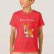 Esta camiseta de férias para crianças é mostrada na cor vermelha com um belo impressão Rudolph festivo. Comprar como está ou personalizar. Imagem do stock