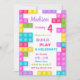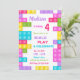 Construindo convites para picaretas, bloqueia convites projetados com a cura cor rosa e púrpura para combinar com a Festa de aniversário das meninas. Cor das Gils favoritas.