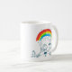 Linha simples ilustração da arte de um casal no amor que guardara por suas mãos e que cria um arco-íris junto. A menina está guardarando a mangueira de jardinagem e polvilhar a água no ar e na cara está iluminando a água polvilha com uma luz instantânea assim que o arco-íris aparece acima deles.