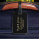 Escrito personalizado, personalizado, fofo, elegante e elegante de tipografia dourada, moderno e legal na moda geométrico de luz de tendências, triângulos de fundo, preto clássico, etiqueta de mala de bagagem acrílica durável com correia de couro. Basta digitar seu nome, endereço e número de telefone para personalizar. Faz um presente de excelente para o casamento, lua de mel, aniversário, graduação, natal, feriados e muito mais.