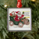 Adicione o texto para fazer estes enfeites de natal personalizados. Papai noel engraçado em um carro da fita dos doces. Adicione seu nome de família ou alguma outra pessoa.