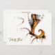 Um design de abstrato de arte de um mítico dragão voador em vermelho, ouro e preto, também deixando uma imagem de seu percurso de voo.