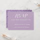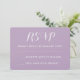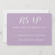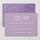 RSVP de casamento simples e personalizável com texto roxo e branco. Fundo de cor sólida simples e liso. Estilo de fonte clássico e elegante, mas você pode escolher entre muitas opções perfeitas para um evento especial de casamento. Um roxo bonito com um design de casamento de agradecimento com caligrafia contemporânea branca e uma foto de brilho amethista em bokeh. Crie seu próprio RSVP de casamento personalizado. Texto branco em um fundo de cor sólida simples, mas você pode personalizar o estilo da fonte, tamanho e cor, bem como o fundo.