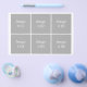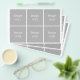 Modelo de Folheto Personalizável com seis grade de imagens quadradas e calendário 2022 no verso