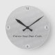Crie seu próprio relógio na Zazzle. Selecione um modelo, adicione uma imagem e personalize com seu nome ou texto para produzir um presente personalizado para um ente querido. Os modelos de relógio que você pode personalizar com as ferramentas de design do produto Zazzle não mostram as horas e os minutos em volta da circunferência da face do relógio (para os relógios circulares) ou laterais (para os relógios quadrados), então adicionamos as horas e os minutos como parte do nosso modelo para que seu relógio seja mais conveniente para você. Há vários estilos para escolher - estilo padrão com as horas de 1 a 12, números romanos de I a XII e um estilo que tem as horas 3, 6, 9 e 12 e gráficos para as horas intermediárias. Os estilos também permitem imagens escuras ou claras na face do relógio. Como Criar Seu Próprio Relógio 1. Navegue nesta linha de produtos para selecionar um estilo de hora adequado para o seu design (isto é, como as horas e os minutos devem ser exibidos) 2. Use a opção Choose Your Style (Escolher seu estilo) para selecionar a forma de relógio quadrada, média arredondada ou grande quadrada 3. Use o painel Personalizar para substituir a imagem do espaço reservado por uma imagem (foto, design gráfico ou logotipo) do disco do duro do computador. A imagem que você usa deve ser grande e estar em alta resolução caso contrário a imagem final pode ficar indefinida ou pixelizada. É mais fácil escalar uma imagem grande para o ajustado do que fazer upload e escalar uma imagem pequena. 4. Use o botão Personalizar a cor laranja para permitir um melhor controle sobre o posicionamento e o tamanho da imagem e para usar as ferramentas de edição de texto para alterar o texto, seu estilo de fonte e sua cor. Estilo 7 - 3,6,9,12 Apenas, em preto, com círculos de apoio brancos translúcidos Escolha um Estilo de Tempo para o Relógio Zazzle Personalizado