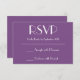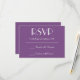 RSVP de casamento de texto roxo e branco. Fundo roxo simples e simples de cor sólida. Estilo de fonte elegante clássico, mas você pode escolher entre muitas opções perfeitas para um evento especial de casamento. Personalize a cor ou o texto do plano de fundo.
