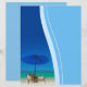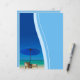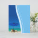 Papel de carta ou papel timbrado para praia, de vazio, com vista para o oceano tropical, com cadeiras de guarda-chuva e de salão. Ideal para aluguel de férias, hotéis costeiros, negócios à beira-mar ou correspondência pessoal.