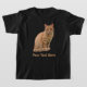 Crie Sua Própria Camiseta Fotográfica De Gato. Adicione a foto do seu próprio gato de estimação e adicione o nome ou algum texto engraçado. Escolha o tamanho, estilo e cor no menu de opções.