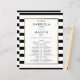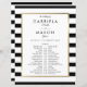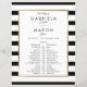 Este cronograma de casamento elegante apresenta uma borda elegante em folha de ouro falso emoldurando os detalhes do seu casamento em tipografia sofisticada sobre um fundo clássico de listras pretas e brancas. Desenhado por Thisisnotme©