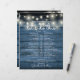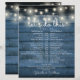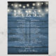 Este cronograma de casamento com luzes de corda rústicas pode ser personalizado com os detalhes do seu casamento em letras brancas elegantes sobre um fundo de painéis de madeira azul. Criado por Thisisnotme©